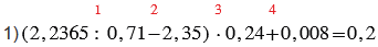 1) (2,2365 : 0,71 - 2,35) • 0,24 + 0,008;