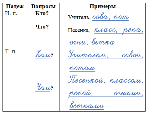 Дополните таблицу вопросами и примерами из предложений упражнения 70. Впишите свои примеры.