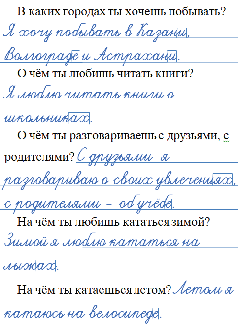 Ответьте письменно на вопросы. Найдите в ответах имена существительные в предложном падеже, выделите их окончания.