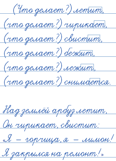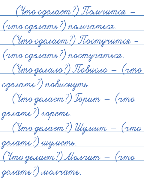 Запишите глаголы из загадок по образцу. Поставьте вопрос к каждому глаголу, определите его начальную форму.