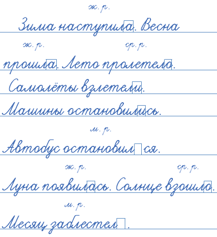 (м. р.). Луна появилась (ж. р.). Солнце взошло (ср. р.).