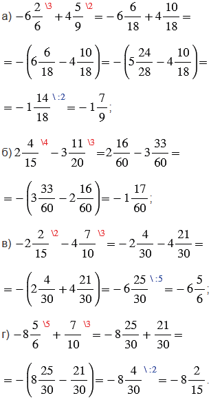 Чтобы найти значения данных сумм, нужно записать сумму противоположную данной, то есть надо записать данную сумму в скобки, изменив знак каждого слагаемого на противоположный, и перед скобками поставить знак минус. Затем выполнить вычисления в скобках по правилам представленным в подсказке.