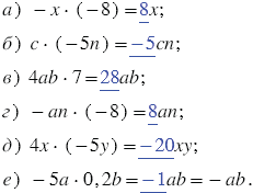 Если в произведении дано несколько чисел, то используя переместительное и сочетательное свойства умножения, эти числа нужно перемножить и число, которое получится при умножении, и является коэффициентом.