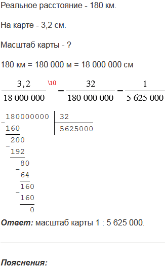 Расстояние между Москвой и Владимиром 180 км. Найдите масштаб карты, у которой это расстояние имеет длину 3,2 см.
