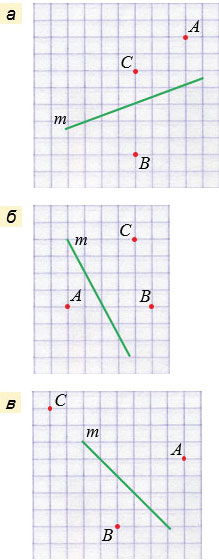 Проведите через точки А, В и С прямые, перпендикулярные прямой