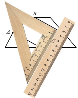 Чтобы проверить параллельность сторон АD и ВС, прикладываем чертежный треугольник к стороне АD одной из его сторон образующих прямой угол, а вдоль другой стороны чертежного треугольника, образующей прямой угол, прикладываем линейку.