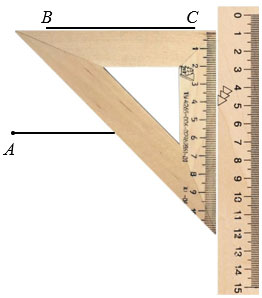 Далее построим прямую ВС параллельную АD. Чтобы провести прямую ВС параллельную отрезку АD, прикладываем чертежный треугольник к отрезку АD одной из его сторон образующих прямой угол, а вдоль другой стороны чертежного треугольника, образующей прямой угол, прикладываем линейку.