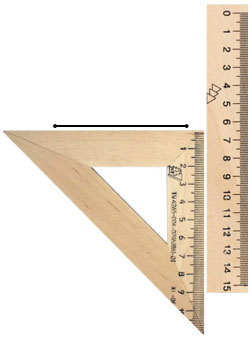 Далее построим прямую параллельную АD. Чтобы провести прямую параллельную отрезку АD, прикладываем чертежный треугольник к отрезку АD одной из его сторон образующих прямой угол, а вдоль другой стороны чертежного треугольника, образующей прямой угол, прикладываем линейку.