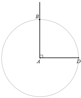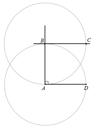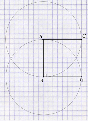 Учитывая то, что нам нужно построить параллелограмм, у которого все стороны равны, чертим с помощью циркуля окружность радиуса АD с центром в точке А, точку пересечения этой окружности с прямой перпендикулярной АD обозначаем буквой В.