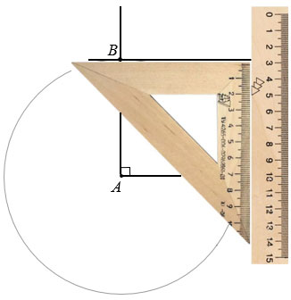 Далее, не меняя положения линейки, двигаем вдоль нее чертежный треугольник до точки В и проводим через точку В прямую вдоль стороны чертежного треугольника.