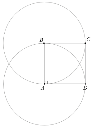 Соединяем точки С и D, стираем лишние части прямых АВ и ВС получаем параллелограмм АВСD с равными сторонами, у которого есть прямые углы, то есть получаем ромб АВСD.