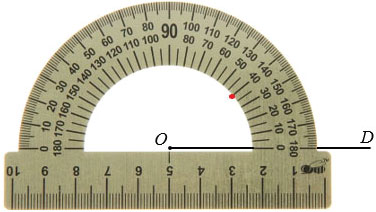 Чтобы построить угол СОD, который равен 400. Сначала чертим луч ОD. Затем располагаем транспортир так, чтобы его центр совпал с точкой О, а луч ОD прошел через нулевое деление шкалы транспортира и отмечаем точку напротив деления 400 (так как луч проходит через нулевое деление внутренней шкалы, то угол отмеряем по ней же):