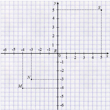 Постройте систему координат с единичным отрезком 1 см и отметьте в ней точки М(-4; -4), N(-3; -3), R(0; 0), S(5; 5).