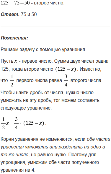 Найдите два числа, если их сумма равна 125 и одного числа равна другого.