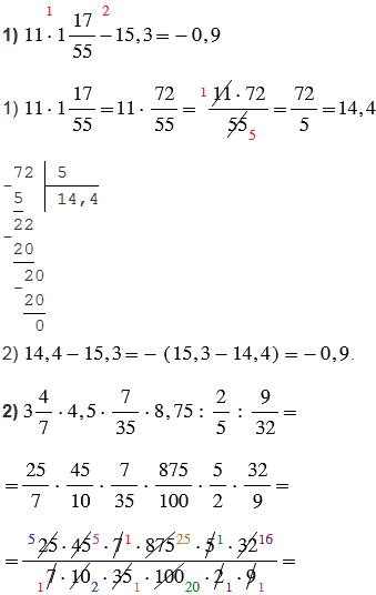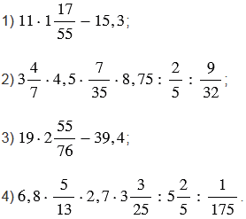 В заданиях 2) и 4) удобно выполнять действия одновременно, так как при умножении можно выполнить сокращение и упростить вычисления.