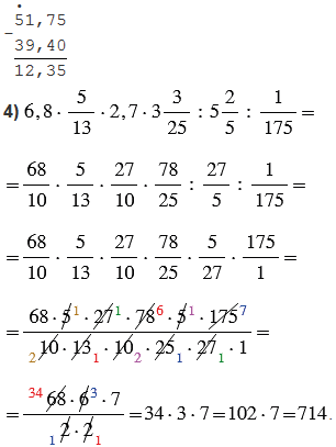 В заданиях 1) и 3) вычисления выполняем по действиям, сначала выполняем умножение, а затем вычитание.