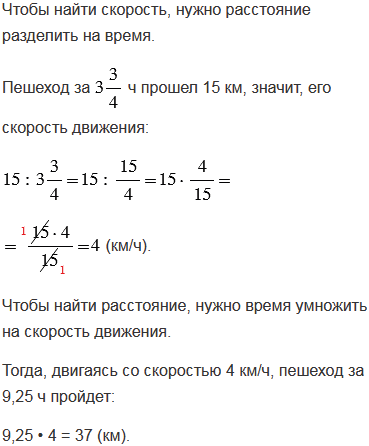Какой путь пройдет пешеход за 9,25 ч, если за