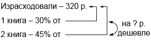 За несколько книг уплатили 320 р. Стоимости двух из книг составили соответственно 30% и 45% израсходованных денег. На сколько рублей одна из этих книг дешевле другой?