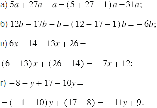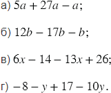 Приведением подобных слагаемых называют замену алгебраической суммы подобных слагаемых одним выражением. При этом пользуются правилом: