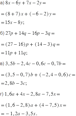 Приведением подобных слагаемых называют замену алгебраической суммы подобных слагаемых одним выражением. При этом пользуются правилом: