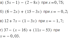 Чтобы найти значение выражения при данном значении переменной, сначала упрощаем данное выражение. Затем в полученное выражение подставляем данное значение переменной и выполняем вычисления. При упрощение используем следующее: