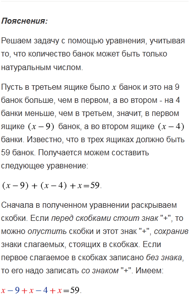 Можно ли 59 банок консервов разложить в три ящика так, чтобы в третьем было на 9 банок больше, чем в первом, а во втором - на 4 банки меньше, чем в третьем?