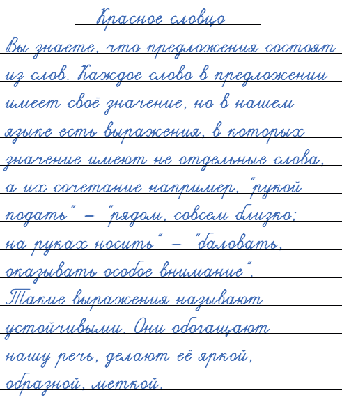 Вы знаете, что предложения состоят из слов каждое слово в предложении имеет своё значение но в нашем языке есть выражения, в которых значение имеют не отдельные слова, а их сочетание например, "рукой подать" — "рядом, совсем близко; "на руках носить" — "баловать, оказывать особое внимание" такие выражения называют устойчивыми они обогащают нашу речь, делают её яркой, образной, меткой.