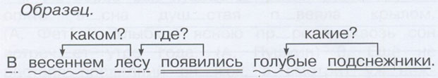 Прочитайте предложения. Подчеркните главные члены. Поставьте от них вопросы к второстепенным членам предложения. Определите тип второстепенных членов, правильно их подчеркните. Разберите все предложения по образцу.
