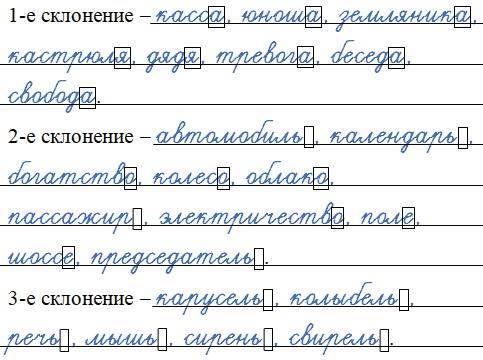 Распределите существительные по трём склонениям и запишите, вставляя пропущенные буквы. Выделите окончания.