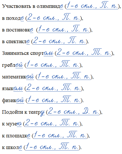 Участвовать в олимпиад_, в поход_, в постановк_, в спектакл_ (______).