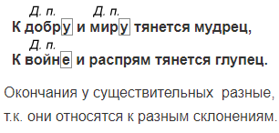 • Выделите окончания у имён существительных в форме дательного падежа единственного числа. Почему окончания у имён существительных в дательном падеже разные?
