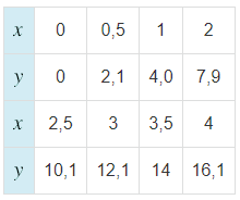 В координатной плоскости отметьте эти точки и покажите с помощью линейки, что они расположены почти на прямой. Составьте формулу, которая приближенно выражает зависимость \(y\) от \(x\).