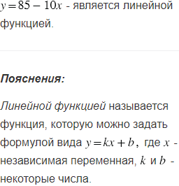 Ученик имел 85 р. На эти деньги он купил \(x\) марок по 10 р. После покупки у него осталось \(y\) р. Задайте формулой зависимость \(y\) от \(x\). Является ли эта зависимость линейной функцией?