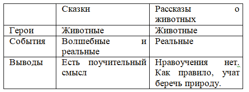 2. Вспомни особенности сказки. Что общего между сказками и рассказами о животных? Чем они различаются? Составь таблицу и запиши её в "Рабочую тетрадь".