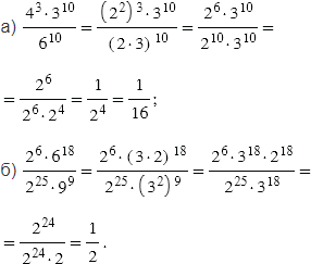 При возведении степени в степень основание оставляют тем же, а показатели перемножают.