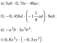 Чтобы представить выражения в виде одночлена стандартного вида, перемножаем числовые множители и степени с одинаковыми основаниями. При умножении степеней с одинаковыми основаниями основание оставляют прежним, а показатели степеней складывают;