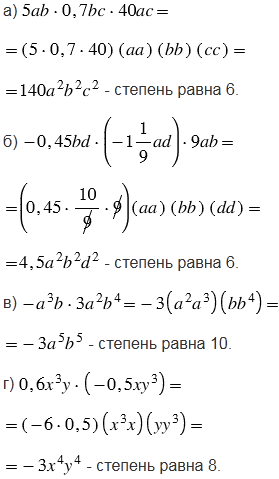 Степенью одночлена называют сумму показателей степеней всех переменных, входящих в него. Степень одночлена, который является числом, отличным от нуля, считают равной нулю.