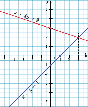 а) \(\begin{cases} x - y = 1, \\ x + 3y = 9; \end{cases}\)