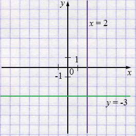 Получились две перпендикулярные прямые \(x=2\) - вертикальная прямая и \(y=-3\) - горизонтальная прямая.