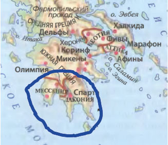 Поработайте с картой (см. с. 127). Найдите и назовите две области, в которых было расположено Спартанское государство.