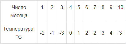 В таблице записаны результаты ежедневного измерения в полдень температуры воздуха в течение первой декады марта: