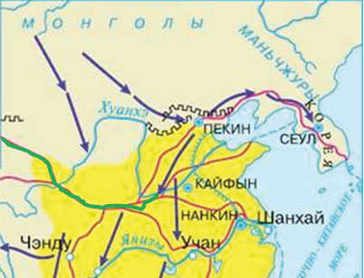 Великий шёлковый путь мы выделили на карте жирной зелёной линией.