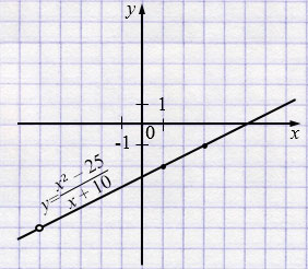 а) \(y = \dfrac{x^2 - 25}{2x + 10}\);