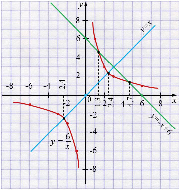 \(y=\frac{6}{x}\) и \(y = x\),
