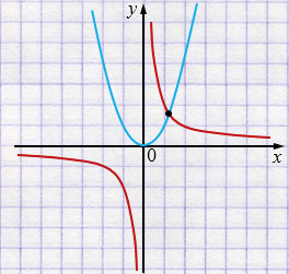 а) \(\displaystyle \frac{k}{x}=x^2,\) где \(k>0\)