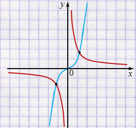 б) \(\displaystyle \frac{k}{x}=x^2,\) где \(k<0\);