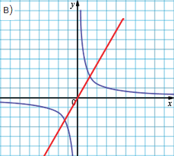 б) Не могут пересекаться в первой и во второй четвертях, так как ветви гиперболы находятся либо в первой и третьей четвертях, либо во второй и четвертой четвертях.