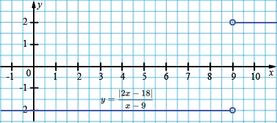 а) \(y = \dfrac{\lvert 2x - 18\rvert}{x - 9}\);