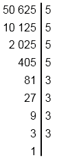 б) \(\displaystyle \sqrt{50 625} = \sqrt{3^4\cdot5^4} =\)