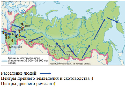 Определите по карте маршруты расселения людей на современной территории нашей страны, покажите центры древнего земледелия, скотоводства, ремесла.